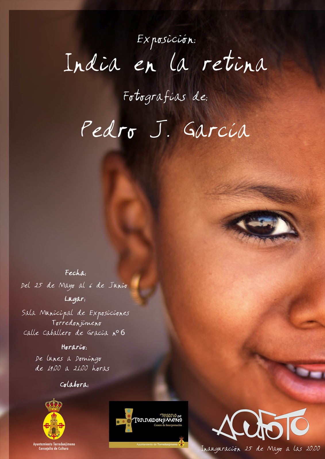Del 25 de Mayo al 6 de Junio, Pedro J. García expondrá su muestra "India en la retina" que podréis visitarla en la Sala de Exposiciones del Ayuntamiento de Torredonjimeno, situada en la calle Caballero de Gracia nº 6, en horario de 19:00 a 21:00 de Lunes a Domingo.