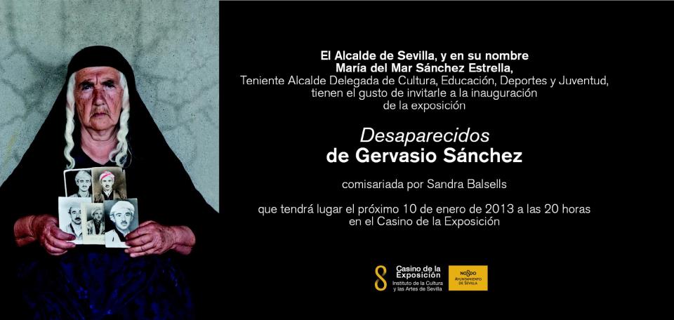 El Casino de la Exposición de Sevilla presenta, del 10 de enero al 10 de marzo de 2013, la muestra itinerante “Desaparecidos” de Gervasio Sánchez, un extenso proyecto de fotografía documental centrado en el tema de la desaparición forzosa realizado en diez países de América Latina, Asia y Europa que han padecido estos actos de violencia.