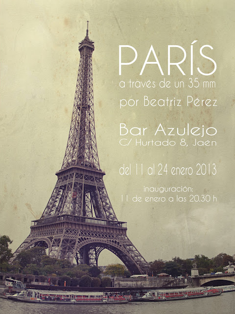 El 2013 retoma las exposiciones de los socios de la Agrupación Fotográfica Santo Reino, y el nuevo ejercicio lo inaugura nuestra compañera Beatríz Pérez, como es habitual en el Bar Azulejo en la Calle Hurtado 8 de Jaén. La cita el 11 de enero a las 20:30 horas.