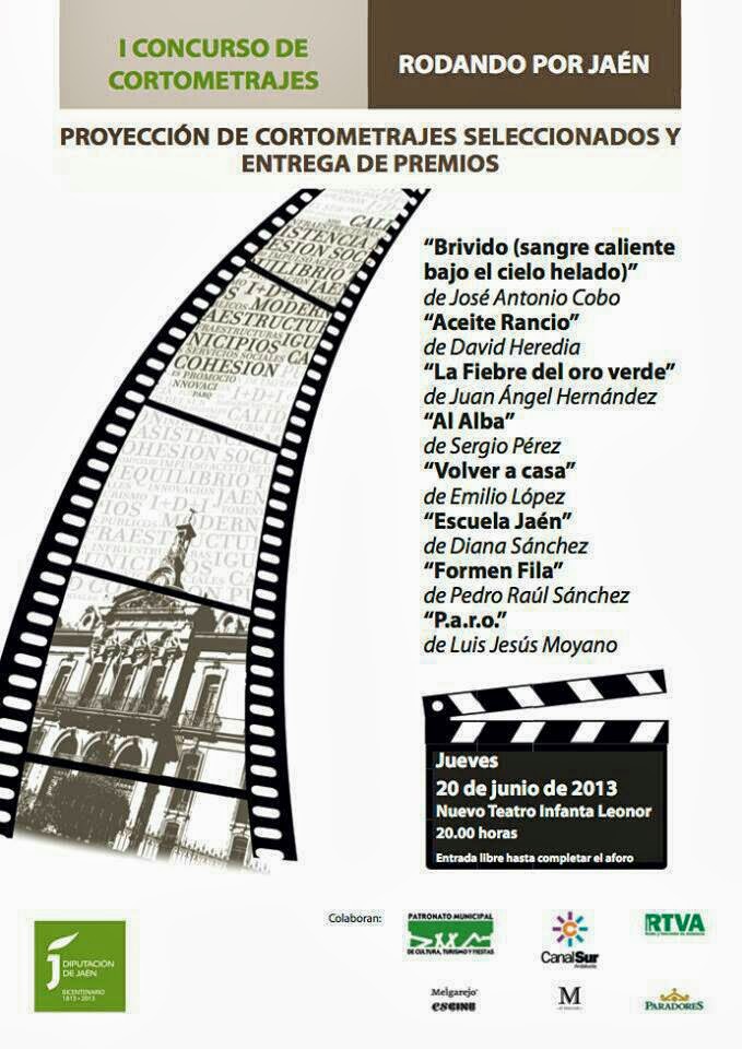 El jueves 20 de junio a las 20:00 horas en el NUEVO TEATRO INFANTA LEONOR de Jaén, se proyectarán los 8 cortos seleccionados dentro del I Concurso de Cortometrajes Rodando por Jaén, entre los que se encuentra P.A.R.O., producción en la que han participado dos de nuestros compañeros: Beatriz Pérez, Presidenta de la Agrupación Fotográfica y Cinematográfica Santo Reino, que ha intervenido como responsable de Fotografía y Diseño, y Juan Francisco Aguilar, encargado de la realización del making off.