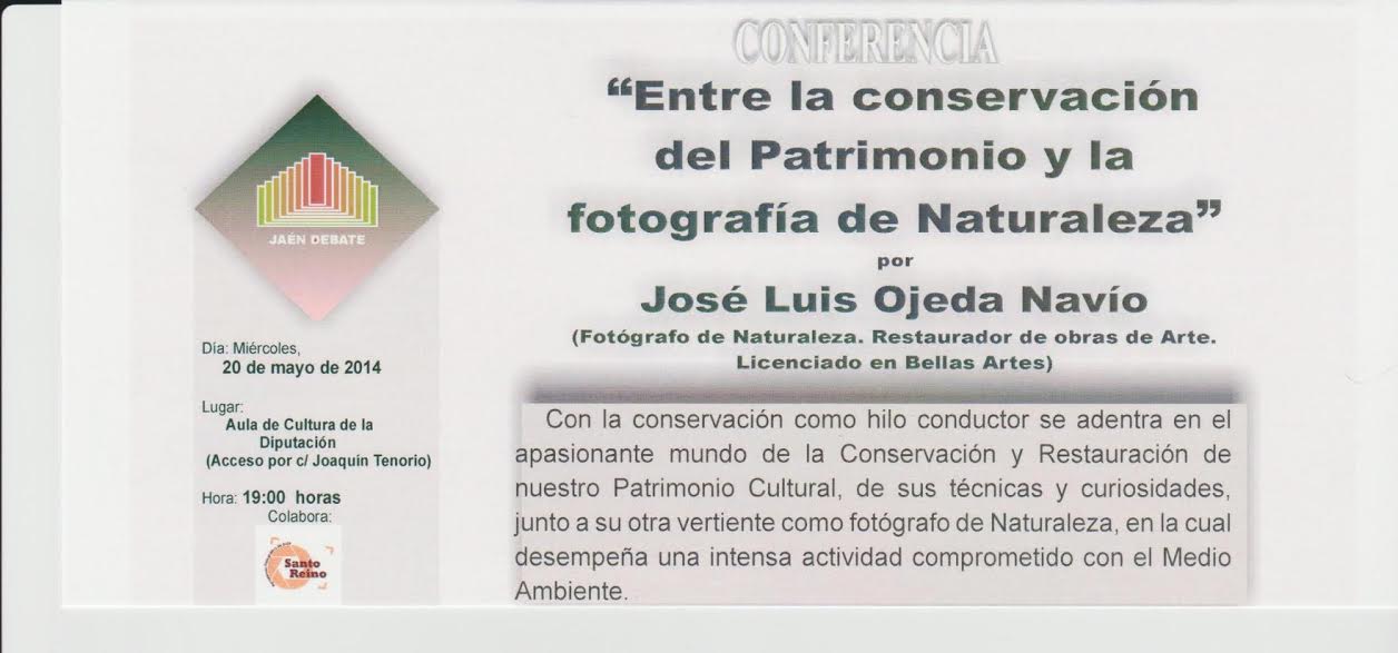 Conferencia José Luis Ojeda Navío: entre la conservación del patrimonio y la fotografía de naturaleza.